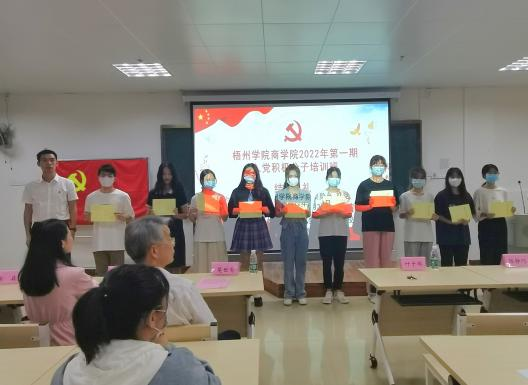 2022年5月23日下午15:00,中共商学院委员会分党校2022年第一期入党积极分子培训班结业典礼在明科楼K-307举行。商学院党委书记、分党校校长莫世有,党委副书记叶子琛同志,商学院党建中心指导老师、学生第一党支部书记肖雅予,第二党支部书记陈静巧,第三党支部书记蔡莹莹,第四党支部书记谢兵出席本次结业典礼,典礼由秘书部李贤娴主持。