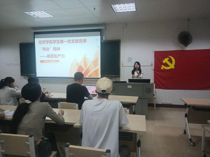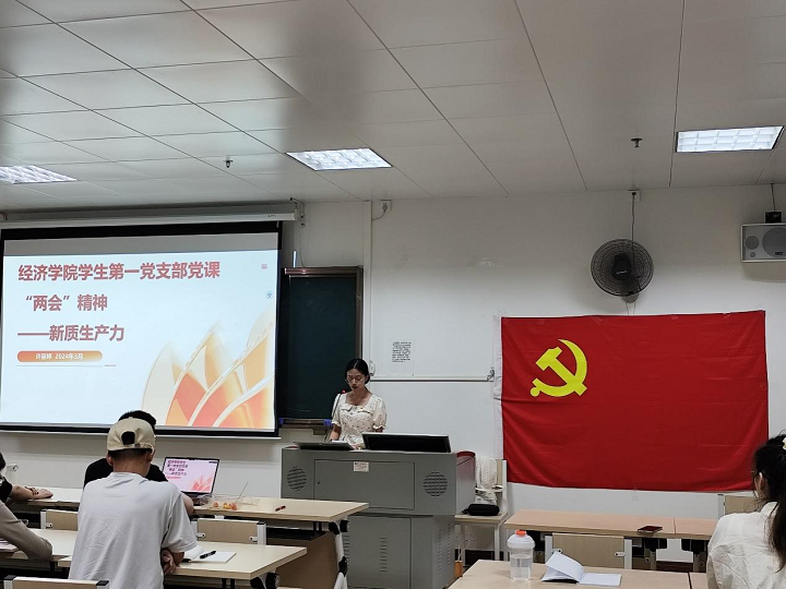 2024年3月28日晚,经济学院学生第一党支部在明科楼K405展开了《传达两会精神——新质生产力》党课活动。