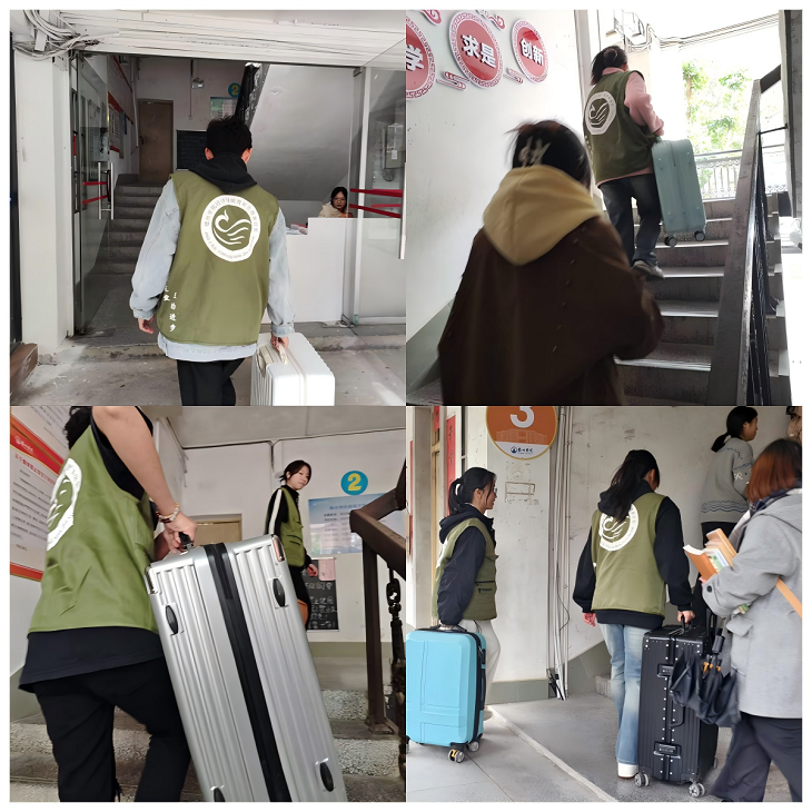 2025年2月23日下午,经济学院学生第五党支部组织学生党员和入党积极分子组成青年志愿者服务队,在“一站式”学生社区A5、A6宿舍区开展了“返校暖心服务”主题党日活动,为开学返校学生提供行李搬运等服务,以实际行动彰显初心。