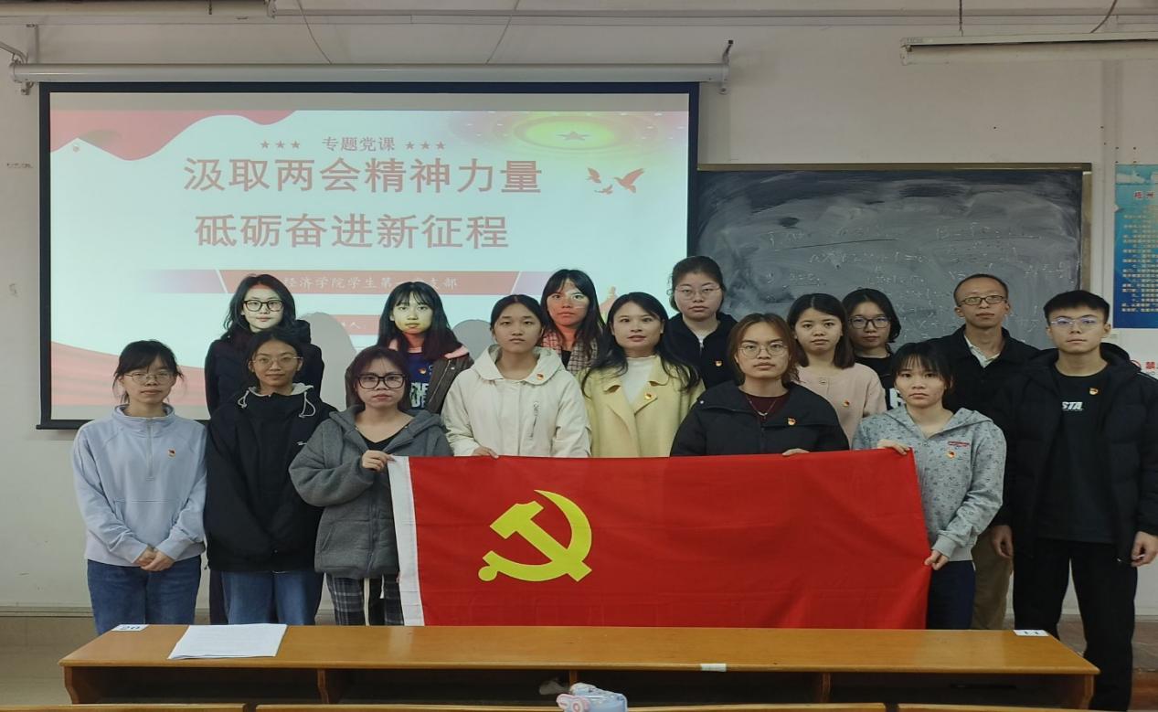 2025年3月16日中午,经济学院学生第一党支部在明理楼M204教室组织全体党员开展“汲取两会精神力量,砥砺奋进新征程”专题党课。