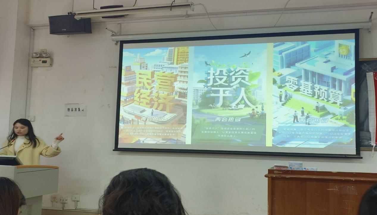 经济学院学生第一党支部书记肖雅予老师分别从“'数'读两会:稳中有进、以进促稳;'新词''热词'看中国经济'新'脉动;从国潮'破圈'到文化出海;党员如何在时代浪潮中担当作为”等四个方面对2025年全国两会精神进行讲授,带领党支部全体党员从宏观上了解2025年全国两会的相关议题和热词。