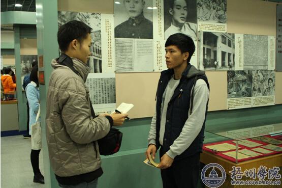 毛廷贵老师告诉入党积极分子们,展览馆是按照“修旧如旧”的原则,围绕中共广西特委和中共广西临时省委在梧州的革命活动,通过实物、图片展示及绘画、模型、场景等形式,全面反映中共广西特委的革命斗争历程。旧址陈列馆中一件件陈旧的遗物和一张张远久的相片,诉说着当年的革命热血青年所创造的中国历史。毛廷贵老师说,虽然大革命时期梧州的地下党力量单薄,但是他们的革命烈火却始终没有熄灭。他们的奋斗目标是为了建立平等自由的新社会,为贫苦大众谋幸福,因此,在斗争中他们依然紧紧依靠群众,团结群众,发动群众,星星之火,最终燎原,迎来了新中国的诞生。梧州学院13级市场营销本科1班谢盼同学表示:“参观旧址陈列馆后,对中共党史有了更深的认识和了解,并要以革命先辈为榜样,坚定入党决心,致力党的建设,努力学习。”经过此次革命旧址的参观游览活动,同学们纷纷表示,要以革命先辈为榜样,继承和发扬前辈们的光荣传统和优良作风,进一步坚定理想信念,强化宗旨意识,树立正确的观念。参观结束后,同学们在展厅进行了合影留念。