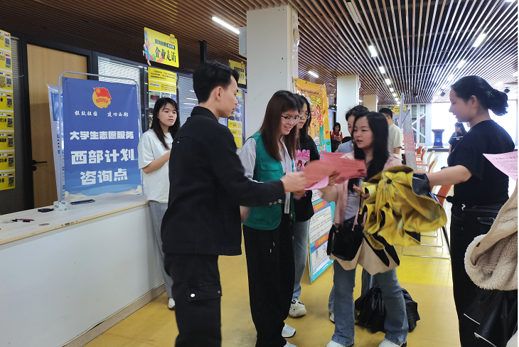 本次活动同时对毕业生开展了大学生志愿服务西部计划宣传,向毕业生详细介绍了西部计划招募对象、条件、服务期间保障、服务期满优惠政策等内容,鼓励并号召符合条件的毕业生参与大学生志愿服务西部计划项目。