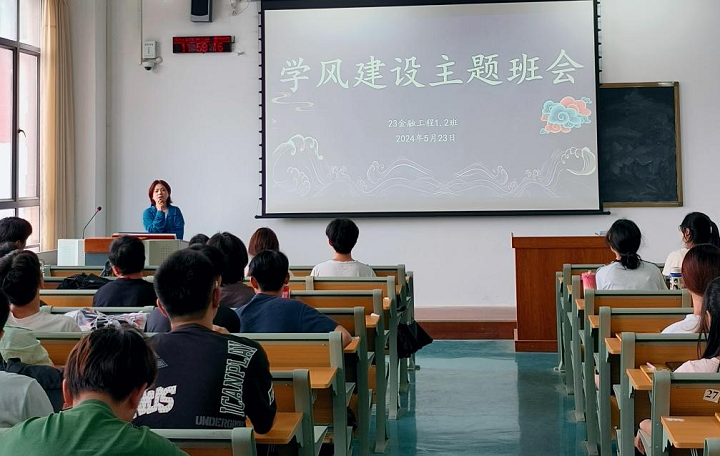 5月23日中午,辅导员欧阳天婷老师于北校区S-303教室给23级金融工程1、2班全体学生开展“博学笃思树学风,勤勉致知铸良才”主题班会。