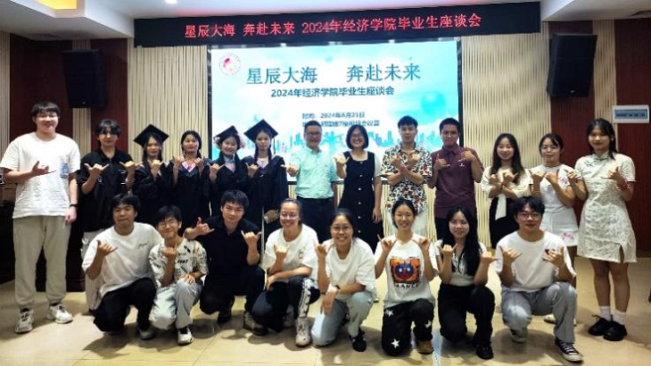 回首青春时光,畅谈前程远方。为更好地倾听毕业生心声,提高学院教育教学管理工作能力,6月25日晚,我院举办了“星辰大海·奔赴未来——2024年经济学院毕业生代表座谈会”。座谈会由李雪婷主持,学院党委副书记卢桂吉、学院团委副书记彭桂英出席会议,毕业生代表和各年级代表参加了此次会议。