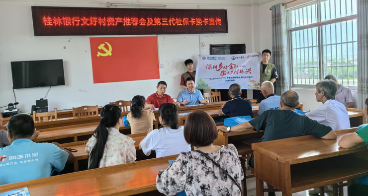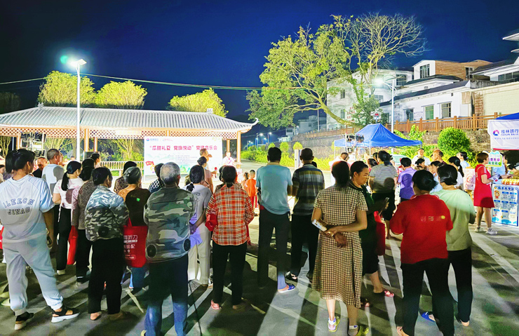 清晨,促进团成员在桂林银行蒙山支行工作人员的带领下来到了文圩镇村委会办公楼为当地村民介绍资产推存和帮助村民进行第三代社保卡换卡等服务,同时促进团成员还向村民宣传了防艾知识,提高了村民的防艾意识和自我保护意识。夜晚时分,促进团成员们发挥各自的特长,协助桂林银行工作人员在北楼村举办党建音乐会。通过精彩的演出,宣传了党的政策,丰富了村民们的文化生活,也增强了当地村民对党建文化的了解。