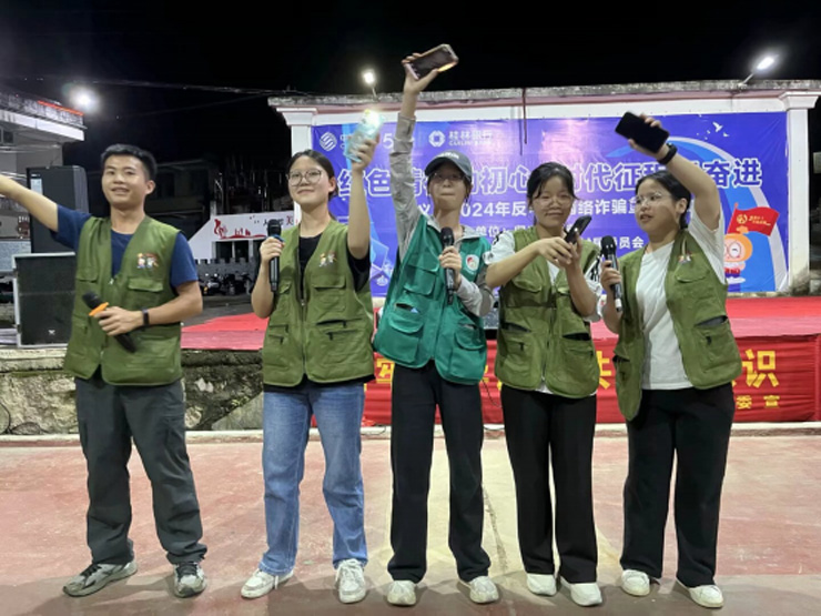 为进一步增强全民反诈意识和能力,保护人民群众的财产安全,7月16日傍晚,我院岑溪乡村振兴促进团成员协同桂林银行工作人员和归义镇派出所,在双贵村开展了“凝心聚力齐反诈,勠力同心守万家”为主题反诈晚会。