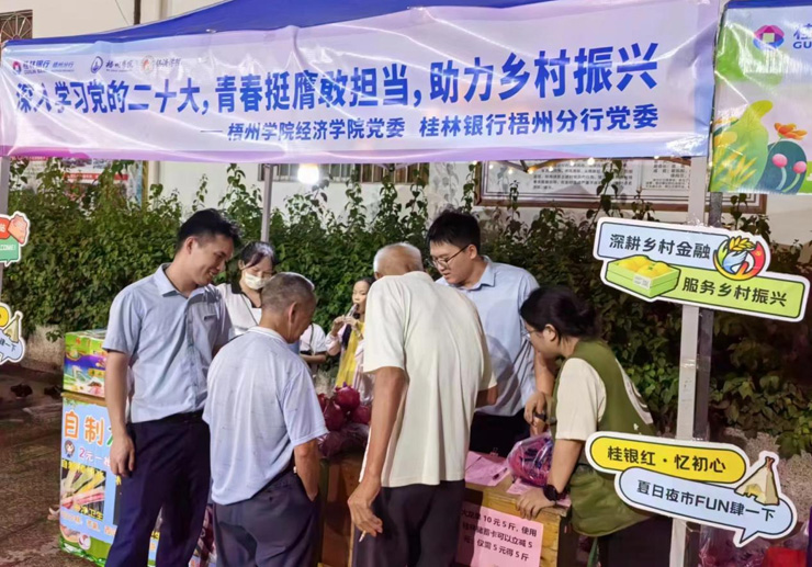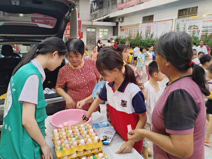 活动上,促进团成员与老人孩子们打成一片,现场充满欢声笑语。在泡沫狂欢区,小朋友们在泡沫池里尽情玩耍。在老年人趣味活动区,村民们可以通过游戏券兑换套圈,进行“抛圈”游戏,获取奖品。在反电信诈骗区,促进团成员与工作人员携手并肩,为大家讲解反诈知识。通过抓“反诈蛋”小游戏,不仅让反电信诈骗的意识深入人心,更在轻松愉快的氛围中提升了村民们的防范意识。在火龙果专卖区,促进团成员化身为热情的推销员,为火龙果代言,帮助果农拓宽了销售渠道。在乡村振兴直播间,促进团成员与驻村第一书记还有桂林银行新塘村服务站负责人一起进行直播,以镜头为媒介,向广大网友展示糯垌镇的农产品魅力。通过精彩讲解与热情推荐,不仅让农产品走出乡村、走向全国,更为乡村振兴注入了新的活力与希望。