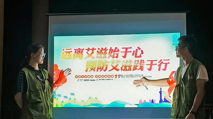 活动现场,助农直播成为一大亮点,我院促进团成员与桂林银行岑溪水汶支行负责人通过线上平台,将水汶镇的香水柠檬、粟米粉等特色农产品推向更广阔的市场,助力农民增收。同时,欢乐游园活动更是将现场气氛推向高潮,村民们积极参与各项游戏,赢取印花兑换精美礼品,欢声笑语不断。值得一提的是,此次活动还特别设置了反电诈、反邪教宣传区,由电信公司和派出所的专业人员为村民普及相关知识,提高大家的防范意识。此外,现场还播放了反诈系列电影,为村民们带来了丰富的文化娱乐享受。最后,在此氛围的延续下,促进团成员积极宣传“用知识打破误解,以行动筑起防艾的坚国防线”的思想。