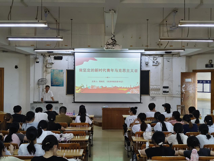 为深入学习贯彻党的二十大精神,培养青年马克思主义者,5月9日下午,经济学院在明理楼S403教室举办2025年第二期“青年马克思主义者培养工程”开班仪式暨开班第一课。经济学院党委书记黄焕克出席并授课,团委负责人李建谅、团委委员参加本期开班仪式。