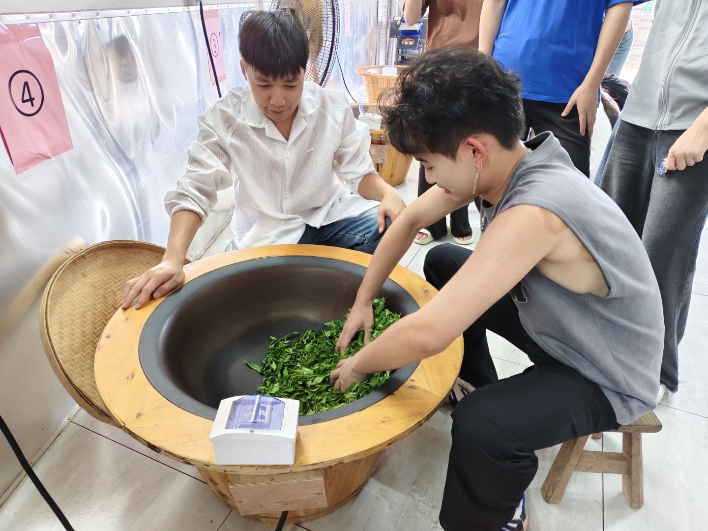 活动中,茶厂技术负责人莫斯华为实践队员系统讲解了茶叶从种植到加工的全流程技术要点。在专业的指导下,队员们亲自参与鲜叶采摘、杀青、揉捻等核心工序,通过"理论+实践"的方式,深入了解到了传统制茶工艺的精髓。同时队员们通过对比现代加工设备与传统手工制茶的差异,对茶叶品质控制有了更深刻的理解。