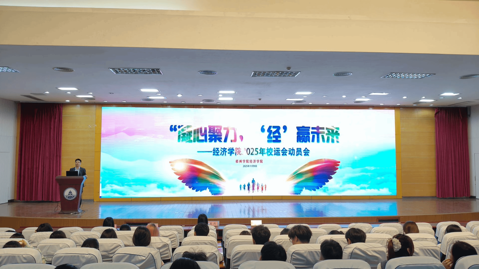 11月9日,经济学院在明理楼报告厅举办校运会动员会暨团学组织成员见面会。学院党委副书记陈兴,学院团委书记罗程飞,辅导员谢兵、朱黎妍,学院团委、学生会全体成员及25级全体新生参加会议。