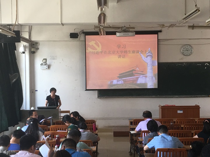 5月30日下午,商学院在S602组织全体教职工集体学习了“习近平在北京大学师生座谈会上的讲话”,会议由学院党委书记雷飞主持。