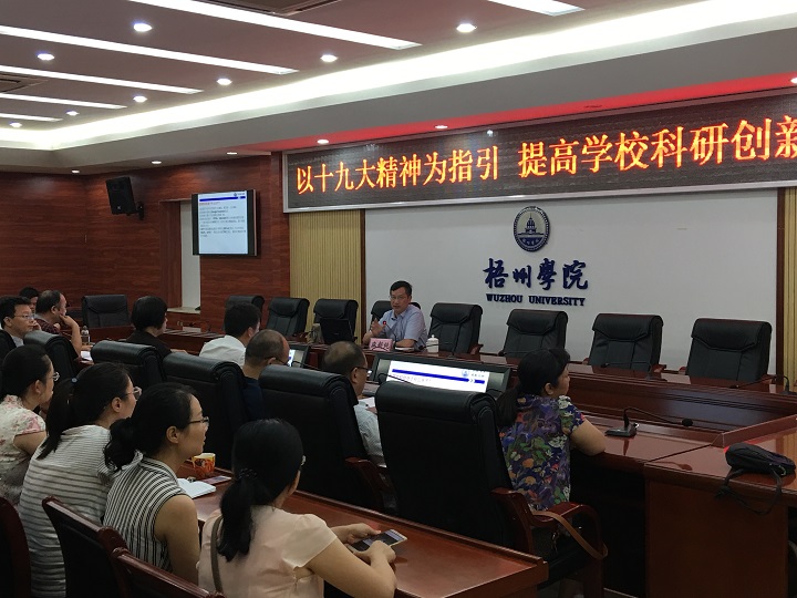 讲座上,麻新纯以“中兴事件”为引子,解读党的十九大报告关于高校科研的关键词,分析了全国高校科研工作的基本情况和梧州学院科研工作情况,就梧州学院科研工作的主要抓手、新时代梧州学院科研发展新使命进行了详细讲解。