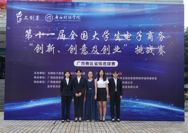 2021年6月26日,由全国电子商务产教融合创新联盟、自治区教育厅主办,广西财经学院、广西本科高校电子商务及物流管理类教学指导委员会承办的第十一届全国大学生电子商务“创新、创意及创业”挑战赛广西区赛省级选拔赛简介(以下简称“三创赛”)在广西财经学院明秀校区举行。来自全区21所高校共118支参赛团队经过校内选拔进入省赛。由商学院电子商务专业学生组成的团队(指导老师:黄冰毅,学生:甘诗瑜,纪婉婷,黄丽,张文欣)获广西区赛三等奖。