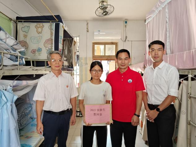 2022年10月28日下午,梧州学院党委常委、副校长范生汝与商学院党委领导一行前往A6学生宿舍,对2022级家庭经济困难学生代表进行慰问活动。
