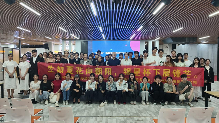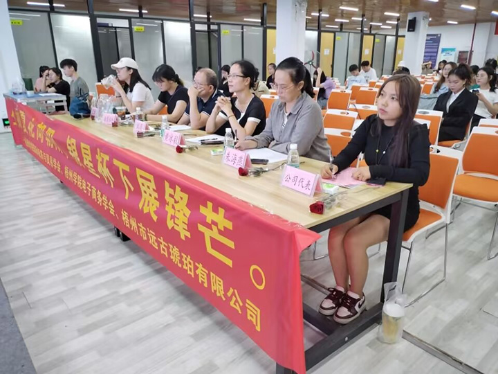 2022年11月12日晚上,由国际经济与贸易学会和电子商务学会联合举办的“银星杯”新媒体直播创业大赛决赛在梧州学院邑谷中心举办,本次大赛由梧州市远古琥珀有限公司支持赞助。担任评委的有国际经济与贸易教研室主任刘磊,电子商务教研室主任黄冰毅,国际经济与贸易专业教研室老师王诗瑶、诸葛佳琳,电子商务专业教研室老师朱海燕,以及梧州市远古琥珀公司代表。