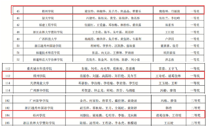 图2至图4:国际贸易赛道部分获奖队伍名单
