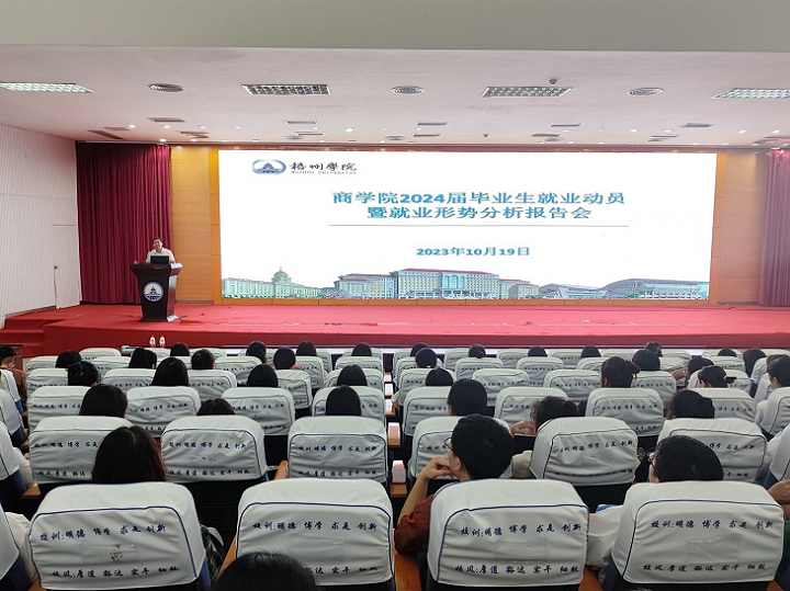 为全面推进2024届毕业生就业工作,提高毕业生就业的主动性和积极性,10月19日下午,商学院在明理楼一楼学术报告厅召开2024届毕业生就业动员暨就业形势分析报告会。报告会由商学院党委书记黄焕克主讲,商学院毕业班辅导员以及全体2024届毕业生参加会议。会上,黄焕克根据学院2023届毕业生就业去向的相关数据及就业情况,就当前招聘现状、就业人数规模、就业竞争压力等方面,深入分析了2024届毕业生的就业形势,从就业思想、就业观念、就业方向等方面为当前目标迷茫的毕业生纾解困惑。报告中,黄焕克从四个方面对就业工作提出要求:一是要树立正确就业观念,明确求职目标。要有“行行可建功,处处能立业,劳动最光荣”的就业意识,树立“先就业、后择业”的就业观和择业观,准确定位就业期望值。二是认清严峻就业形势,提前做好求职准备。要形成“一颗红心两手准备”的意识,加强面试技能技巧训练,提升核心竞争力。三是主动搜集就业信息,积极参加校园招聘。积极主动关注国家大学生就业服务平台、广西毕业生就业网、学校就业信息网等校内外就业服务平台。四是认真签约诚实守信。求职材料真实、客观,不弄虚作假,遵法学法,学会运用法律知识维护自身合法权益的同时谨防陷入高额报酬等就业诈骗陷阱。