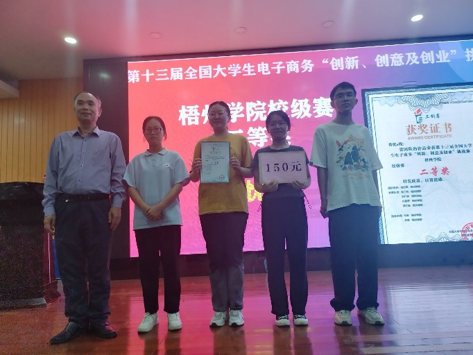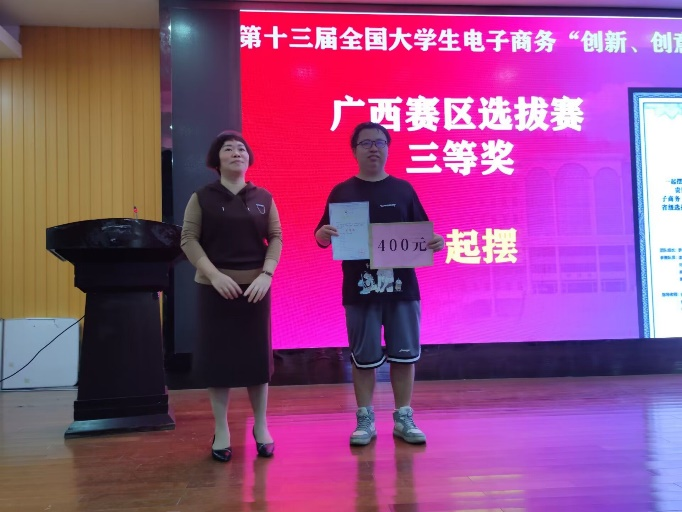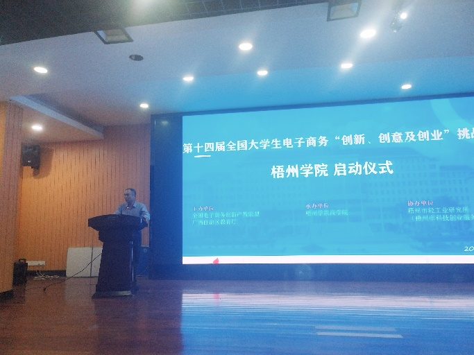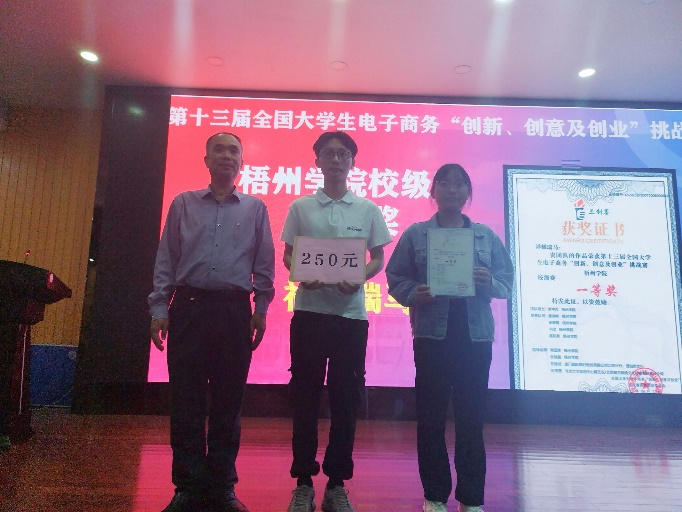 在正式颁奖前,黄冰毅老师对颁奖情况进行了说明。这次大赛,由梧州市轻工业研究所(梧州市科技创业服务中心)协办,并为获奖团队提供了共1万元奖金,在区级和校级选拔赛中获奖的梧州学院共计47支团队都能获得相应等级的奖金。