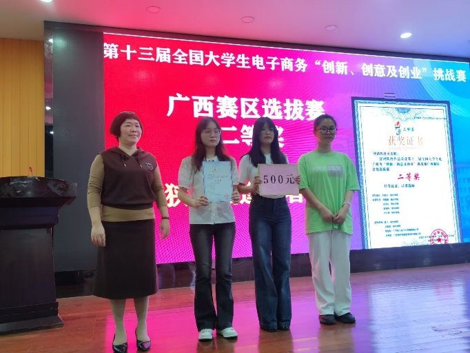 2023年10月24日晚上,由商学院承办的梧州学院第十三届全国大学生电子商务“创新、创意及创业”挑战赛颁奖暨第十四届全国大学生电子商务“创新、创意与创业”挑战赛校级赛报名启动仪式,在梧州学院体育馆负一楼邑谷中心成功举行。第十三届电商三创赛我校参赛成绩突破了历史最好成绩,在省级赛中首次获得一等奖1项,另获得二等奖1项、三等奖1项,同时获得省级最佳创新奖1项。到场参加颁奖仪式的嘉宾有梧州市轻工业研究所(梧州市科技创业服务中心)副所长李洁彦,梧州学院商学院副院长叶毅、电子商务教研室主任黄冰毅、电子商务教研室教师代表,以及各获奖团队成员。