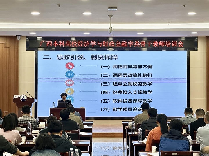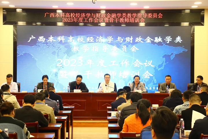12月8日,广西本科高校经济学与财政金融学类教学指导委员会2023年度工作会议暨骨干教师培训会在我校召开。广西本科高校经济学与财政金融学类教指委全体委员、特邀培训专家、全区高校相关专业骨干教师及我校商学院全体领导以及金融工程、数字经济、金融科技、国际经济与贸易等专业教师等近100人参加了会议。