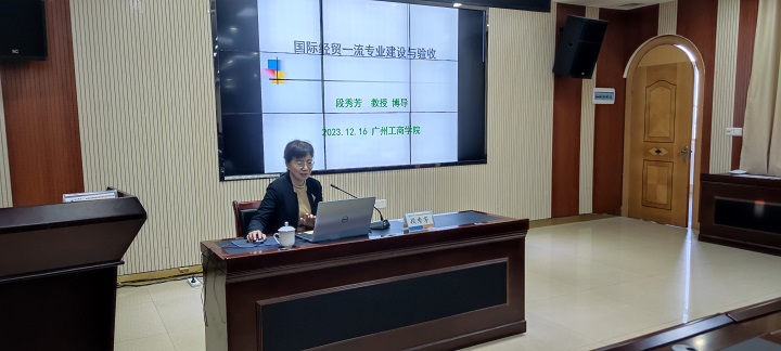2023年12月20日,商学院成功举办数智时代我国国际商务发展第十六场学术交流会。新疆财经大学段秀芳教授应邀为商学院、管理学院教师作了题为《国际经贸一流专业建设与验收》的学术讲座,讲座由商学院副院长梁文光主持。