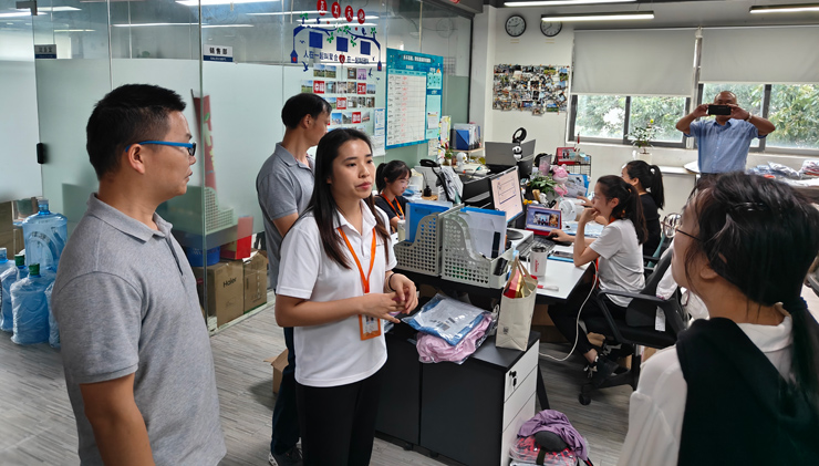 调研组兵分两路,分别走进深圳乐客企业咨询有限公司、深圳市信益鸿服饰有限公司、深圳市橙大业网络技术有限公司、震坤行工业超市(上海)有限公司深圳分公司、中山市小禹哥传媒技术有限公司深圳分公司、深圳市伍壹叁数字科技有限公司、美特斯工业系统(中国)有限公司、深圳希施玛数据科技有限公司等8家企业考察,通过座谈交流、实地调研等形式,就进一步拓展教学实践、毕业生就业、人才培养等方面进行了深入探讨交流。