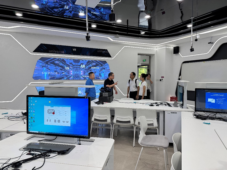 座谈会前,在苗森副院长的带领下,梁文光一行参观了尚德二号楼的教学设施,全面了解了各教室配备的前沿数字化技术与智能化教学功能,也与正在实践学习的学生进行了交流。