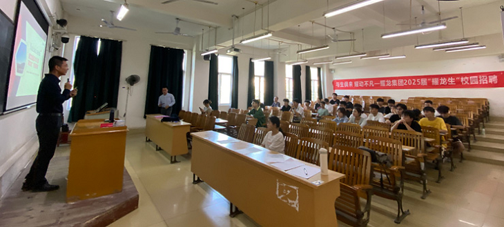 10月23日下午,耀龙集团在明理楼北楼304教室举办2025届毕业生就业宣讲会。耀龙金属总经理陈晓龙一行、经济学院毕业班辅导员谢兵、2025届国际经济与贸易、电子商务等专业毕业生参加宣讲会。