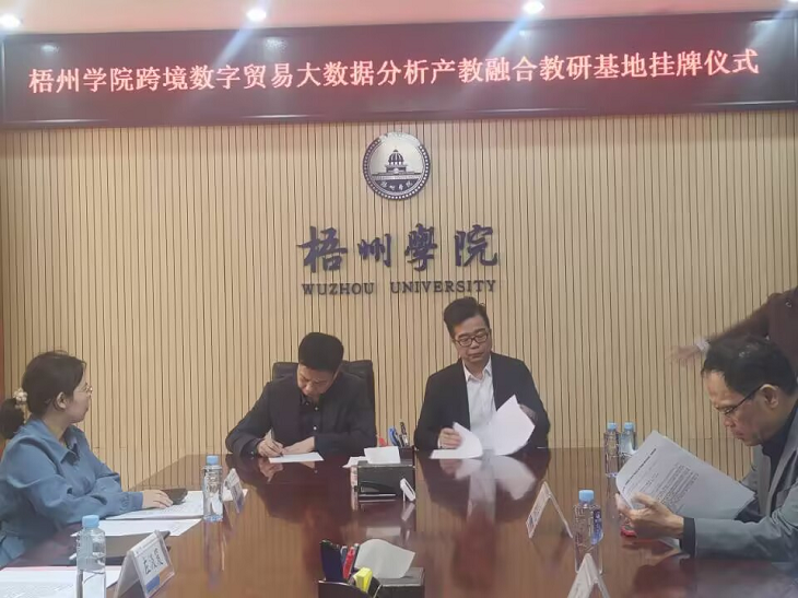 近日,梧州学院经济学院与湖南典阅教育科技正式宣布成立跨境数字贸易大数据分析产教融合教研基地,标志着我校经济学院在以国际经济与贸易专业为龙头的数字经济专业群在产教融合工作上迈出了重要一步。
