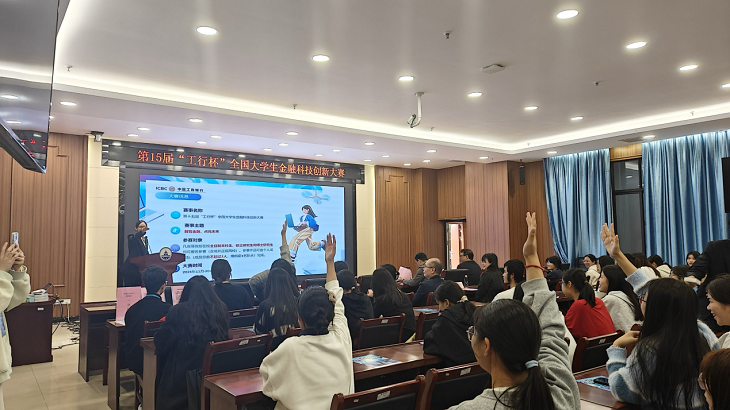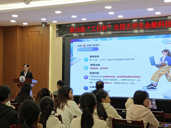 随后工商银行广西区分行金融科技部黄睿经理为同学们介绍了大赛的主题、参赛流程、评审标准以及金融科技的前沿动态等。通过黄经理的介绍,同学们对金融科技有了更深入的了解,也对大赛有了更清晰的认识。