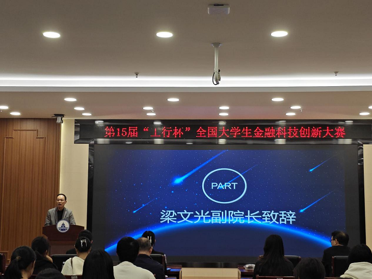 本次活动由经济学院副院长梁文光致辞,梁副院长对参加活动的领导、老师和同学表示感谢,指出本次大赛对培育金融科技应用型人才的重要性,让同学们感受到了学院对本次大赛的高度重视。