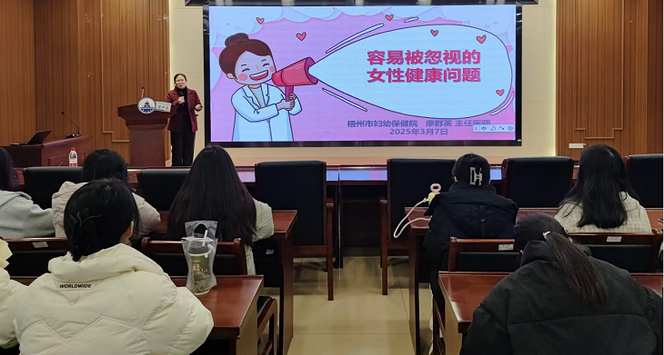 为提高妇女健康意识,普及科学的健康知识,3月7日,梧州学院经济学院社区、管理学院社区联合主办的妇女健康知识讲座在明科楼一楼多功能厅成功举办。此次讲座吸引了社区许多女同学们踊跃参与,现场气氛热烈。