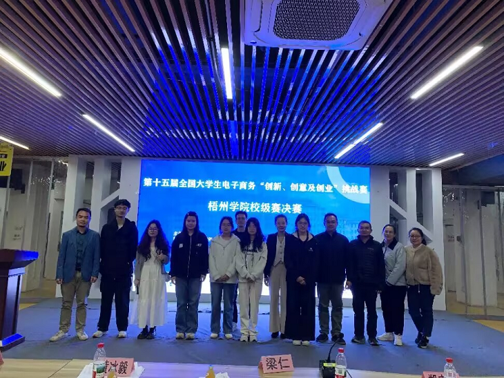 2025年4月2日,由经济学院承办的第十五届全国大学生电子商务“创新、创意及创业”挑战赛(以下简称“三创赛”)梧州学院校级选拔赛决赛在体育馆负一楼邑谷中心成功举行。本次大赛邀请了3名校外企业专家(梧州市电子商务协会监事长韦龙升、梧州市电子商务协会会长梁仁和梧州市文化创意协会会长李强)和4名校内专业教师(经济学院电子商务教研室主任黄冰毅、电子商务专业教师韦丰、郑庆花和朱海燕)共同担任比赛评委。经济学院院长杨诚也莅临了比赛现场。