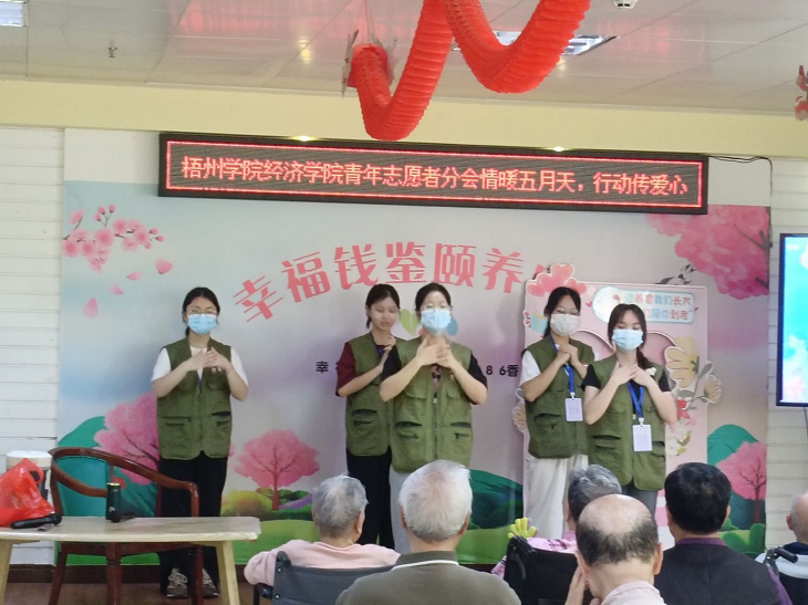 为更好地弘扬“奉献,友爱,互助”的志愿精神,增强大学生对奉献精神的了解,传承“老吾老以及人之老”的文化基因。5月18日上午,经济学院团委、青年志愿者分会与幸福钱鉴颐养中心携手开展“情暖五月天,行动传爱心”主题活动。