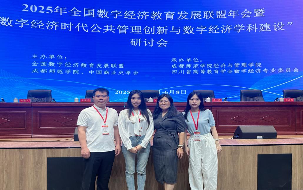 6月6日至8日,经济学院院长杨诚带队赴成都师范学院温江校区参加2025年全国数字经济教育发展联盟年会暨“数字经济时代公共管理创新与数字经济学科建设”研讨会。会议由全国数字经济教育发展联盟、成都师范学院、中国商业史学会主办,来自全国120多所高校和企事业单位近400名数字经济专家学者和高校教师参加会议。学院数字经济教研室主任韩永彩及相关教师参加会议。