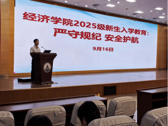 为助力2025级新生迈好大学第一步,学院精心安排“开学第一课”系列活动:院长杨诚以《经济学的世界观、前沿与未来规划》为题开启专业认知课,凭借深厚专业功底与丰富教学经验,围绕专业定位、学科特色及发展前景展开深入浅出讲解,通过生动案例与详实数据,帮助新生清晰勾勒专业轮廓,筑牢专业信仰基础。党委书记陈丹带来题为《忠诚》的党课,站在时代高度从理想信念塑造、价值追求培育入手,引导新生树立正确人生观、价值观,强调要将个人成长与国家、社会发展紧密结合,为青春奋斗指明方向。副书记陈兴聚焦“第一堂安全课——严守规矩,安全护航”,围绕校园、人身、财产安全等关键领域,通过真实案例分析与深入解读,让新生深刻认识安全重要性,并提供实用防范措施,提醒时刻保持警惕,筑牢安全防线。