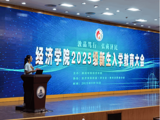 大会伊始,23级金融工程1班的王思琪作为老生代表,结合自身学习生活经历,向新生分享大学适应技巧与成长心得,让现场充满学长学姐的温暖关怀。随后,25级国际经济与贸易1班的范晓慧作为新生代表发言,她目光坚定、声音洪亮,字里行间洋溢着对大学生活的无限憧憬与奋斗决心,展现出当代青年朝气蓬勃的精神风貌,点燃了新生们的激情与期待。
