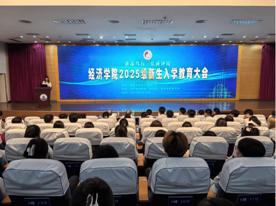 9月16日晚19:30,经济学院2025级新生入学教育大会在明理楼学术报告厅盛大举行,学院党委书记陈丹、院长杨诚、副书记陈兴,各专业教研室主任,新生辅导员、班主任以及2025级新生共370人齐聚一堂,参加教育大会。