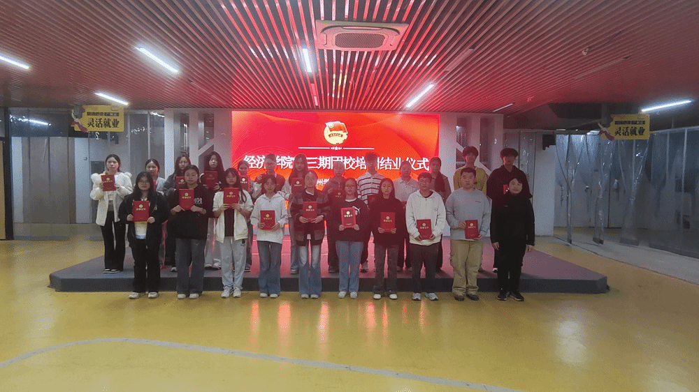 12月11日,经济学院2025年第三期团校培训第二课暨结业仪式在体育馆负一楼邑谷中心举行。学院团委书记罗程飞,学院团委委员,培训班全体学员参会。
