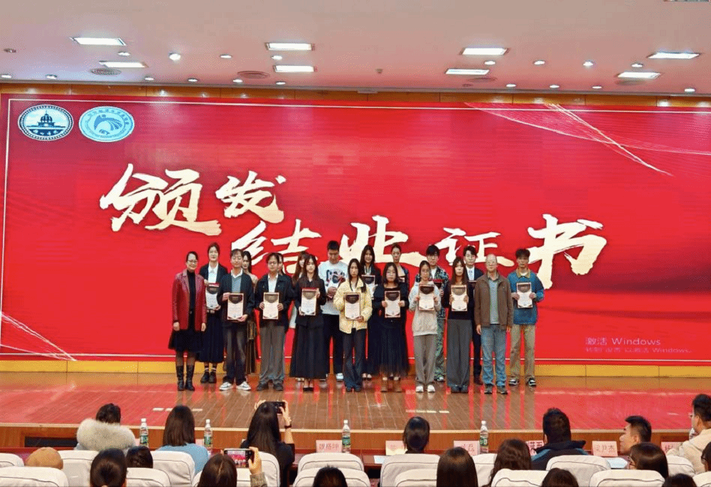 教师代表魏格坤教授在发言中围绕“英才”内涵,回顾数字贸易英才班培养历程,寄语结业学员与全体同学以此次典礼为新起点,坚守初心、扎根地方、终身学习。与会嘉宾为英才班学员颁发结业证书。