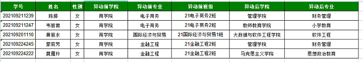 根据《梧州学院商学院转专业管理办法(试行)》,由学生个人申请,经审核,拟同意陈婷等5名学生从商学院转出,现予以公示3天(9月7日—9日),如有异议,请以书面形式并署真实姓名交到商学院办公室M717。