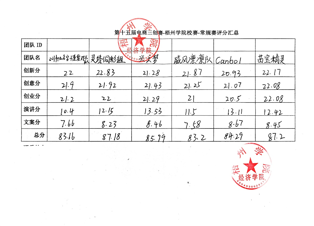 经过激烈的角逐和公正的评审,第十五届全国大学生电子商务“创新、创意及创业”挑战赛校级选拔赛圆满落幕。因为实战赛的总分由创业分和评委现场打分共同构成,而需要由各实战平台提供的创业分现在还未能完全获取,所以实战赛总决赛分数稍迟再公布。现先将常规赛成绩进行公示,公示期五天。如对比赛成绩有异议,请于发稿时间五日内,发送实名邮件到指定邮箱:wz-hby@qq.com。