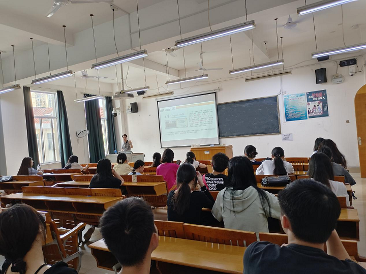 宣讲会上,广东金海燕进出口服务有限公司副总经理杨培锋向毕业生介绍了广东珠三角地区外贸进出口企业的就业需求信息,帮助毕业生了解电商、贸易等岗位技能的要求。杨培锋结合个人经历,从企业的基本情况、发展历程和员工成长等方面进行分享,激发了毕业生的就业实习兴趣。