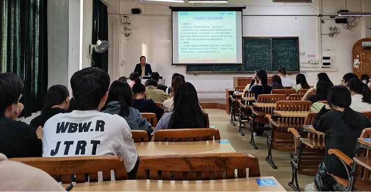 11月5日,为提升我院毕业生的公考应试能力及备战公考的信心,学院在明理楼南楼202教室举办就业指导之公务员考试辅导专题讲座,由广西鸿政教育咨询有限公司宋秉桂老师主讲。备战公务员考试的2025届毕业生、其他年级学生参加了本次讲座。