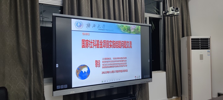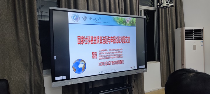 2022年11月17日上午,广西大学黎鹏教授来我校做哲社课题项目申报与结题交流指导。商学院和管理学院部分领导和教师代表参加了会议。