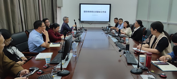 2023年3月21日下午,国际商务硕士点建设工作会在实验楼国际商务案例分析室召开。会议由国际商务硕士点总负责人、管理学院院长张堂云主持。商学院和管理学院院长及相关领导、学科带头人和相关老师参加会议。