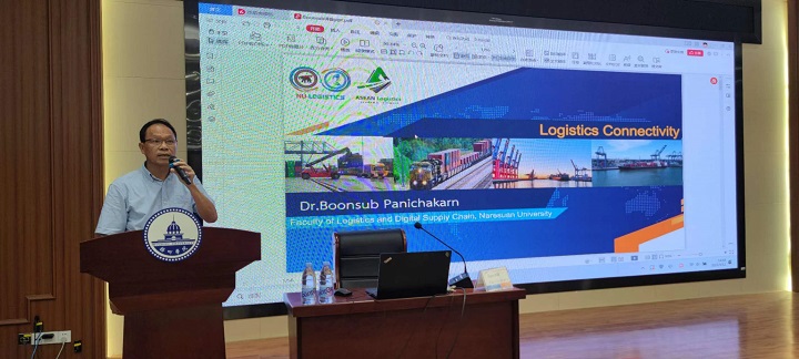 9月12日下午,由商学院、管理学院联合邀请泰国那黎宣大学物流与数字化供应链学院Boonsub Panichakarn博士进行关于《国际物流链接推进世界经济发展》专题讲座。商学院副院长梁文光、管理学院副院长黄河与国际经济与贸易教研室、物流教研室老师以及两个专业的学生180余人共同出席本次讲座。本次报告由梁文光副院长进行主持。