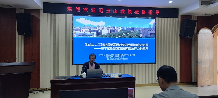 11月27日下午,吉林大学中国国有经济研究中心研究员、吉林大学经济学院纪玉山教授莅临我院作题为“生成式人工智能最新发展趋势及我国的应对之策——基于因地制宜发展新质生产力的视角”的讲座。讲座在明理楼七楼视频会议室举行,经济学院全体教师、数字经济专业部分学生代表参加会议。会议由经济学院副院长梁文光主持。